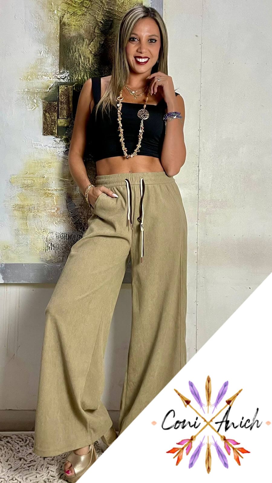 Palazzo cordón con bolsillos y pretina elasticada
